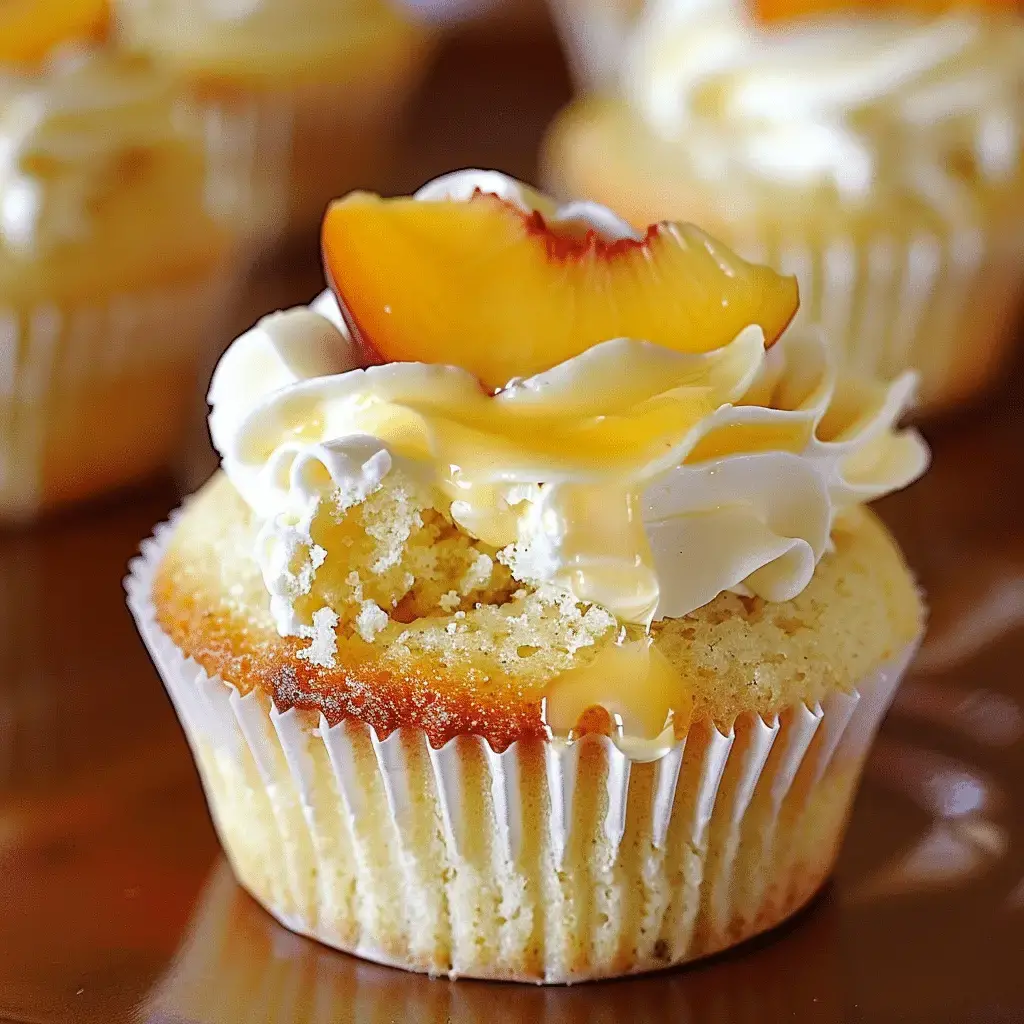 - Presentation: Serve these cupcakes on a decorative platter or cake stand to showcase their delicious toppings of diced fresh peaches, honey drizzle, and sugar crystals.