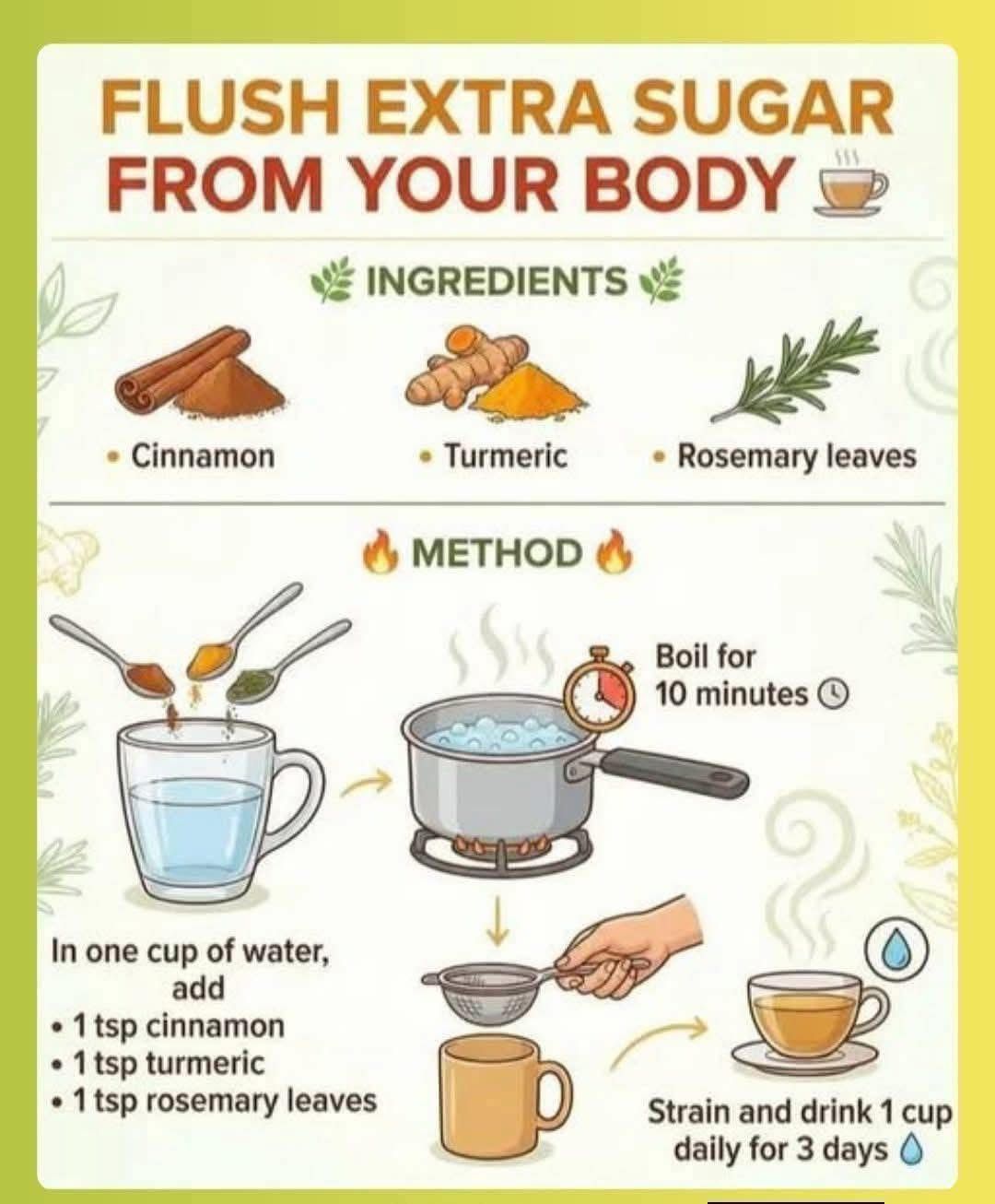 Clearing excess sugar from the body is important for maintaining a healthy metabolism and overall well-being. This simple natural drink is easy to prepare and can help support your body naturally. Ingredients: